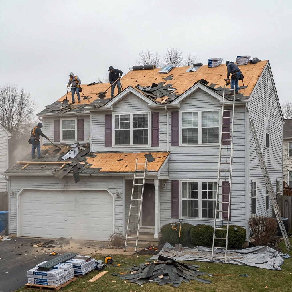 Removed old roofing materials Inspected and repaired roof decking Installed new underlayment and shingles